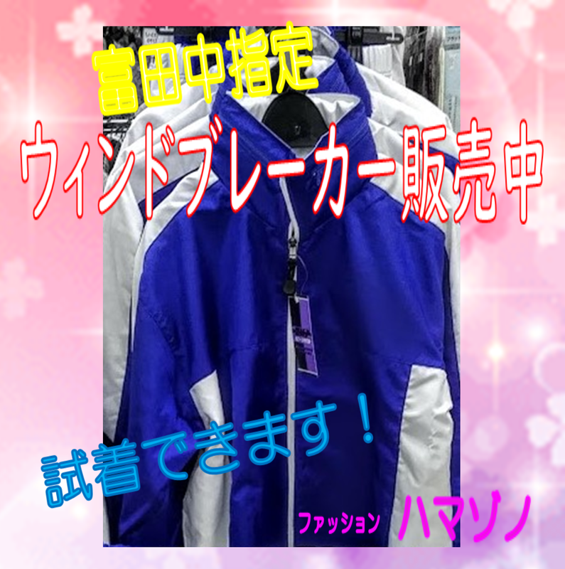 ★富田中指定ウィンドブレーカー販売中です。試着もできますよ~☆
